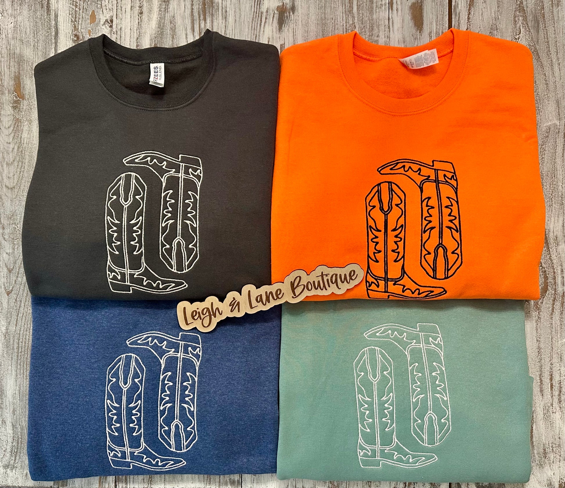 Meet your new go-to cozy with a little western charm. This crewneck features beautifully embroidered cowboy boots on the front — subtle, sweet, and full of personality. Soft, comfy, and perfect for everyday wear, it’s the kind of piece that feels just as good dressed up with denim as it does thrown on for school drop-off or a weekend coffee run.